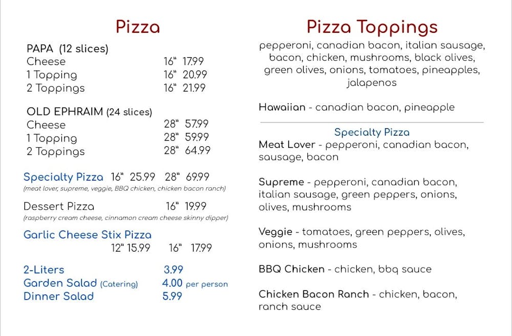 Try Our 28" "Old Ephraim" Pizza!